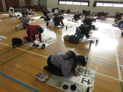 2学期、冬休みと練習してきた成果を発揮できるよう、真剣に取り組みました。 5年生、6年生ともに、一画一画、心を込めて書きあげることができました。 校内書きぞめ展が1月21日(水)から26日(月)に開催されます。 お子様の作品を、ぜひ御覧ください。