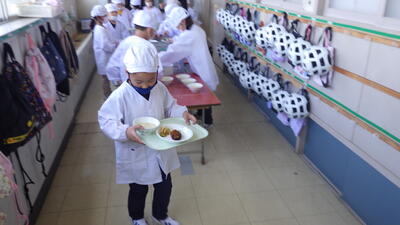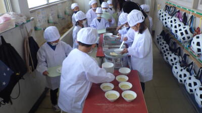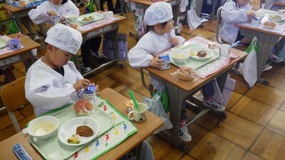 1年生は、今日が鉢形小に入学してはじめての給食でした。