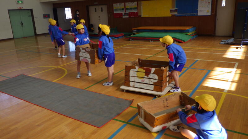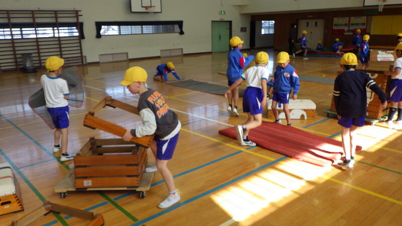 2年生の体育では、現在跳び箱運動に取り組んでいます。友達と声をかけ合いながら協力して準備や片付けを行い、以前よりもすばやく安全に活動を始められるようになってきました。