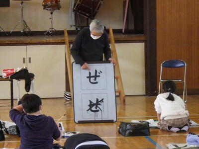 地元の書道家である鳥塚健先生から一人一人に丁寧にポイントを教えていただきました。