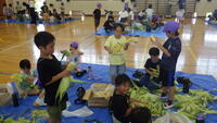今日1年生と2年生でとうもろこしの皮むきをしました。2年生は1年生にむき方を教えながら、手際よくむいていました。1年生は、だんだんと皮むきに慣れてくると4本、5本とどんどん上手にむけるようになりました。今日みんなでむいたとうもろこしは、明日の給食に出る予定です。楽しみですね!