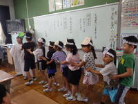 7月19日(水)にクラスごとに学級会を行いました。1組は「1学期がんばったね会」、2組は「夏もがんばろうね会」と称し、クラスごとに話し合い、みんなで楽しめる遊びを考えました。当日はみんなで協力し合い、楽しく過ごすことができました。