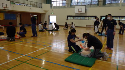 深谷市消防本部の皆様よる応急手当講習会を実施しました。かけがえのない命を守るために、救急車を待つだけではなく、救急車が来るまでにできることを教えていただきました。命を守る心肺蘇生の方法やAEDの操作方法、エピペンの使用方法等も教えていただいたり、実際に体験したりしました。一人一人が貴重な体験を胸に刻み、いざという場面では勇気を持って、救命活動が行えるようにしたいと思いました。